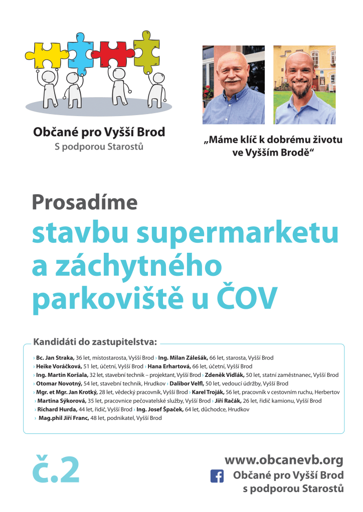 Existují i konkrétní zájemci o výstavbu supermarketu, se kterými již měsíce jednáme. Plán je takový, že kromě obchodu bude muset investor vybudovat i nový sjezd na pozemek a úpravu chodníku. Tím se městu výrazně zlevní budoucí výstavba městského záchytného parkoviště v lokalitě, nebude muset sjezd z hlavní komunikace platit. Všichni v koalici jsme pro tento záměr od samého začátku. Když od vás dostaneme šanci, budeme pokračovat v dalších jednáních a stavbu supermarketu chceme dotáhnout. Musíme využít zájmu investorů.